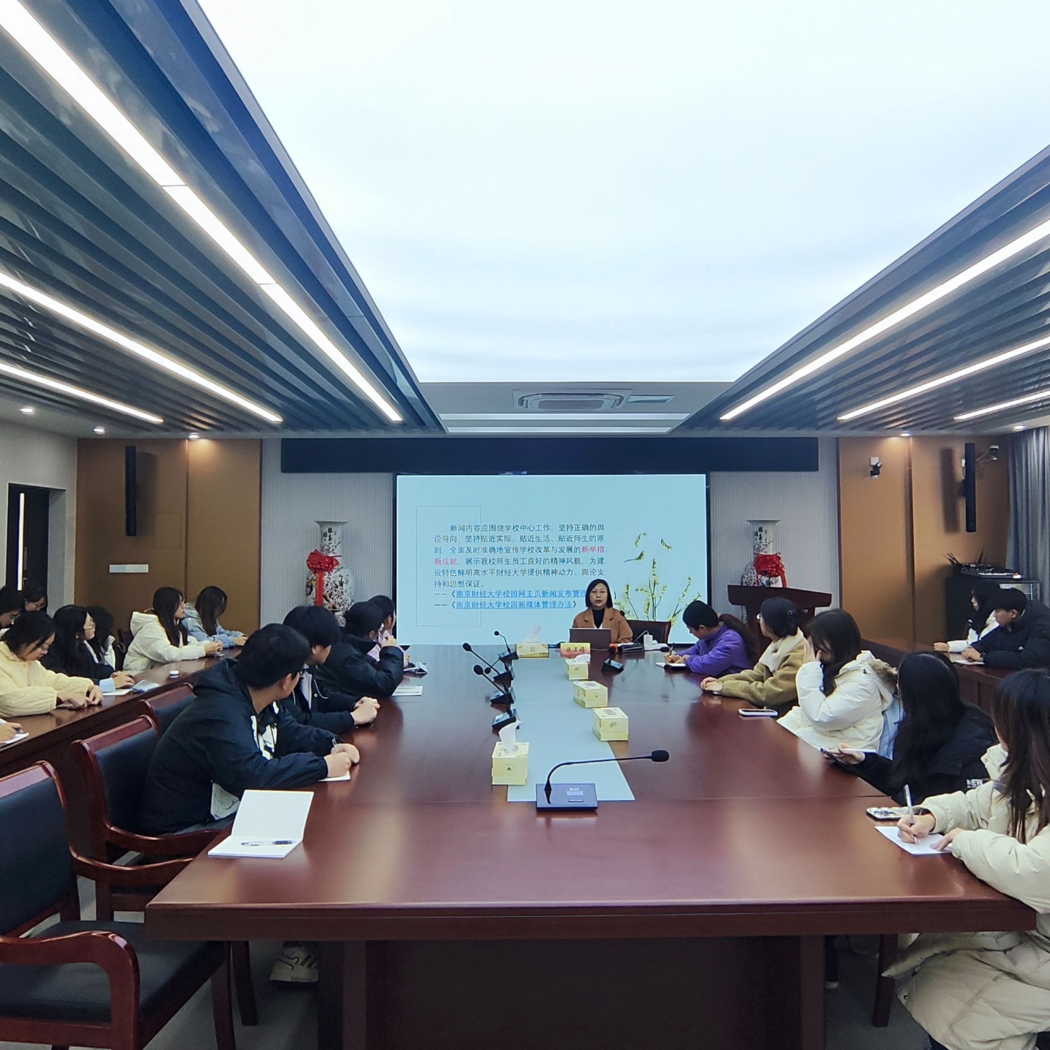 12月7日,里番 在徳经楼508举办宣传思想工作主题培训。本次培训由里番 党委宣传部施卫娟老师主讲。里番 党团学生干部和部分教师参加了本次培训。 本次培训分为两个部分:校内宣传思想工作和校外宣传思想工作。在校内宣传思想工作方面,施卫娟老师先系统介绍了我校新闻网的栏目设置,并从“写作基本规范”、“新闻稿报道‘模板’”两个方面着重讲解了内宣新闻稿撰写的要求和技巧,强调了写作的基本规范,...