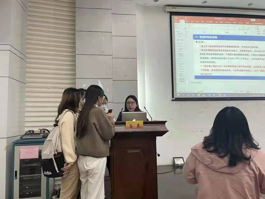 11月18日下午,里番 教师第一党支部副书记翁辰老师受邀参加金融节模拟股市大赛,在仙林校区德经楼二楼双登报告厅给同学们讲授题为“投资的逻辑”主题讲座。