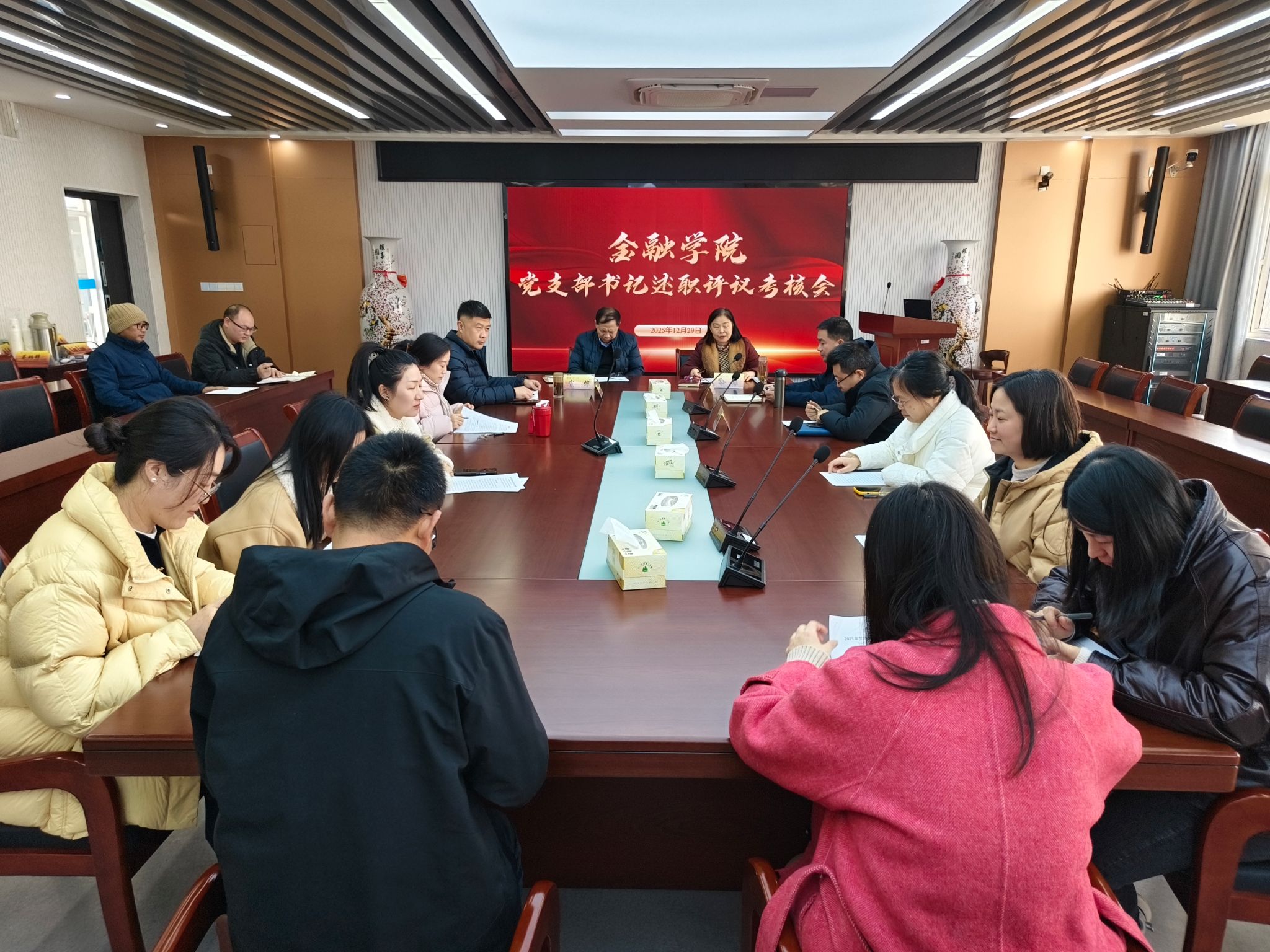 党委召开2025年度党支部书记工作述职评议会,深入贯彻全面从严治党要求,压紧压实党支部书记党建工作责任。学院党委书记孙菲主持会议,学院党委委员,各党支部书记、支部委员、群众代表参加了会议。