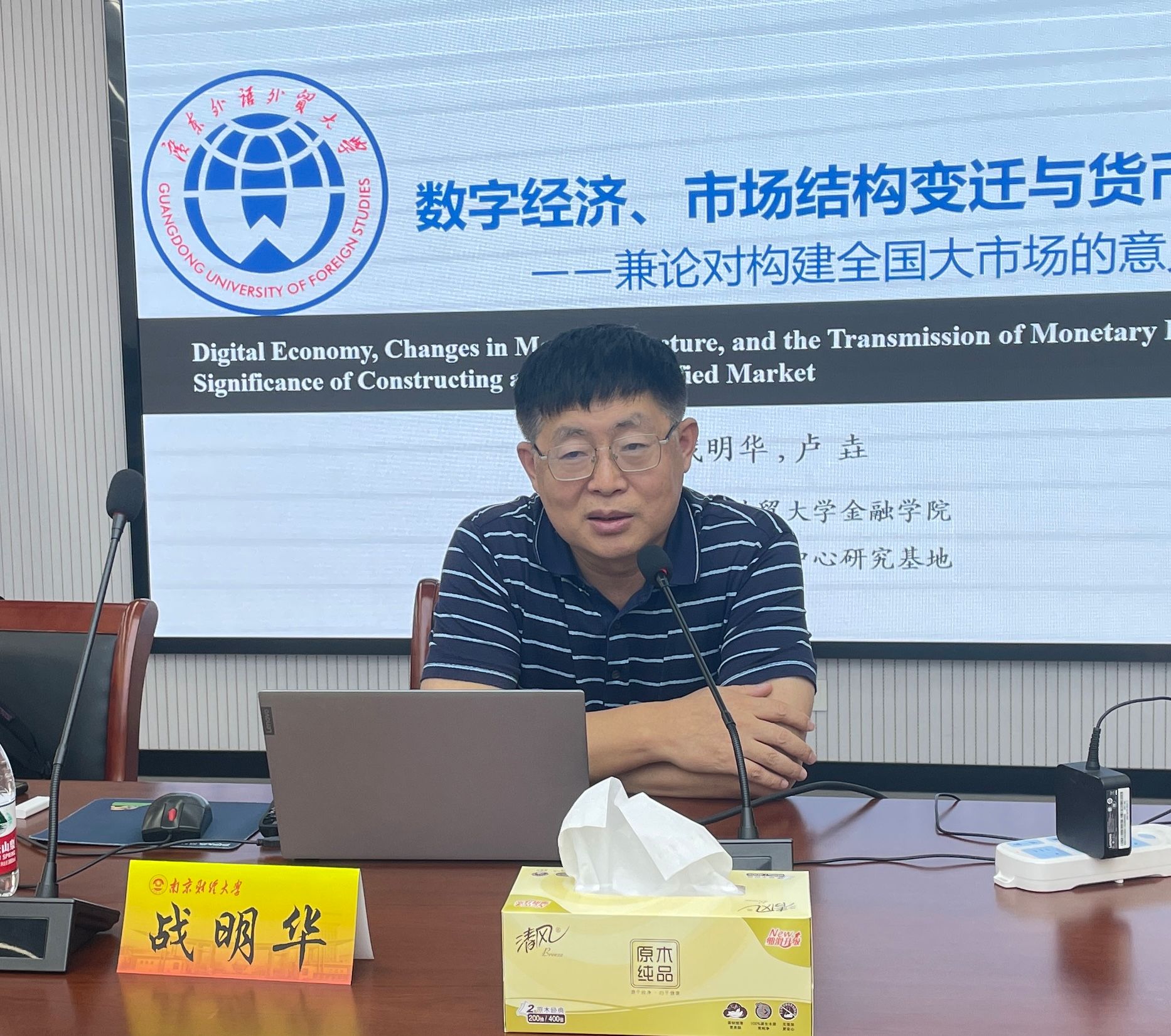 9月25日上午,应里番 邀请,广东外语外贸大学里番 战明华教授在仙林校区德经楼508会议室作了题为“数字经济、市场结构变迁与货币政策传导”的学术讲座。讲座由学院副院长尹雷主持。学院部分教师和研究生参加了讲座。