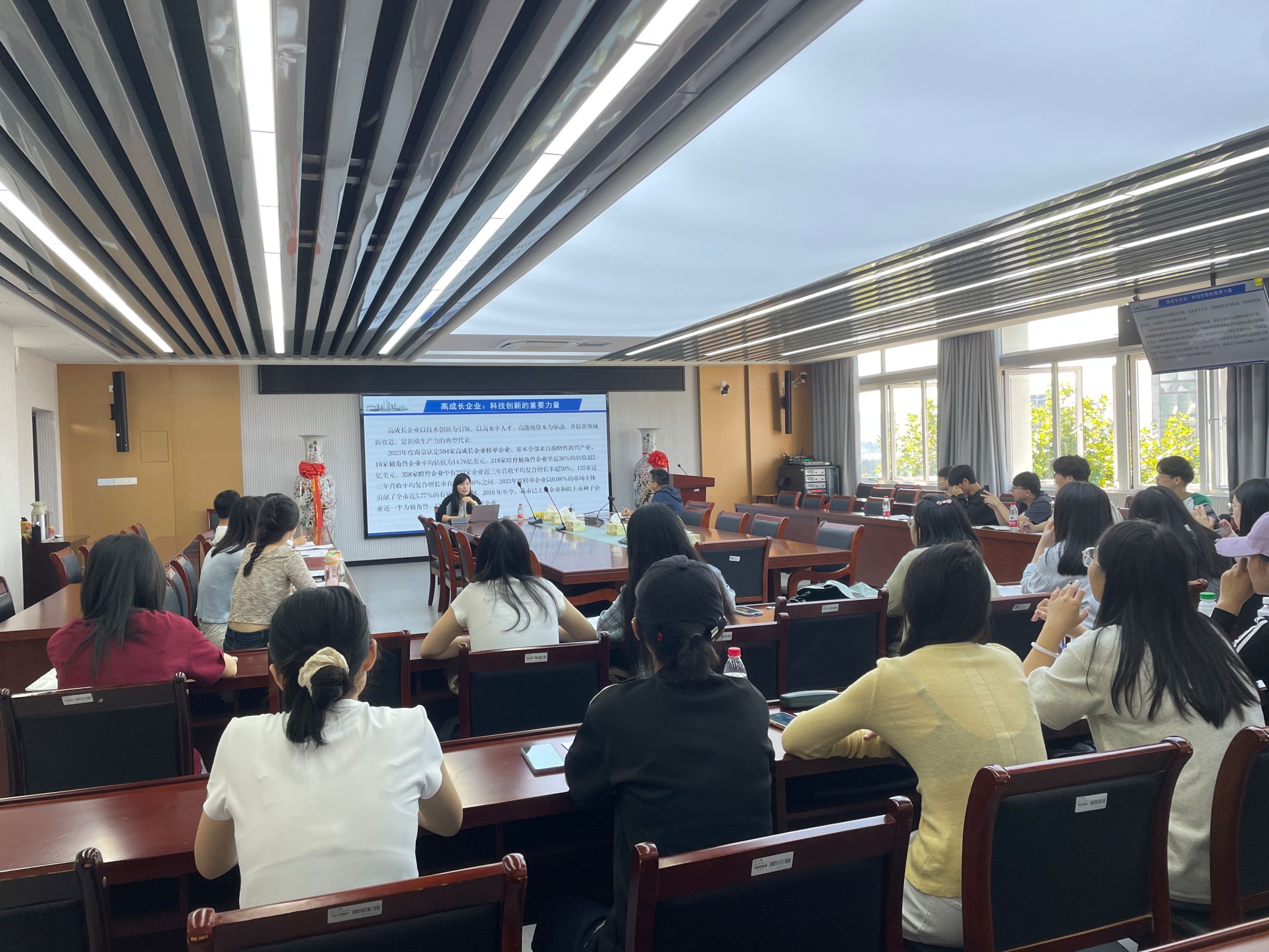 9月24日上午,应里番 邀请,南京市社会科学院研究员郑晓洁在仙林校区德经楼508会议室作了题为“数字经济赋能产业高质量发展”的学术讲座。讲座由学院副院长尹雷主持。学院部分教师和研究生参加了讲座。