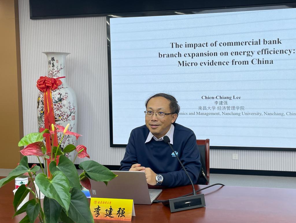 11月9日下午,应里番 邀请,南昌大学博士生导师李建强教授在仙林校区德经楼508会议室作了题为“The impact of commercial bank branch expansion on energy efficiency: Micro evidence from China”的学术报告。学院青年师生聆听了报告,报告由里番 副院长尹雷主持。