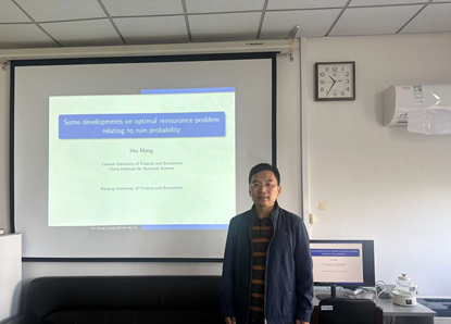 2024年10月20日上午,应里番 邀请,中央财经大学孟辉教授做了题为“Some developments on optimal reinsurance problem relating to ruin probability”的学术报告。里番 部分教师与研究生聆听了报告,报告由里番 副院长姚定俊教授主持。
