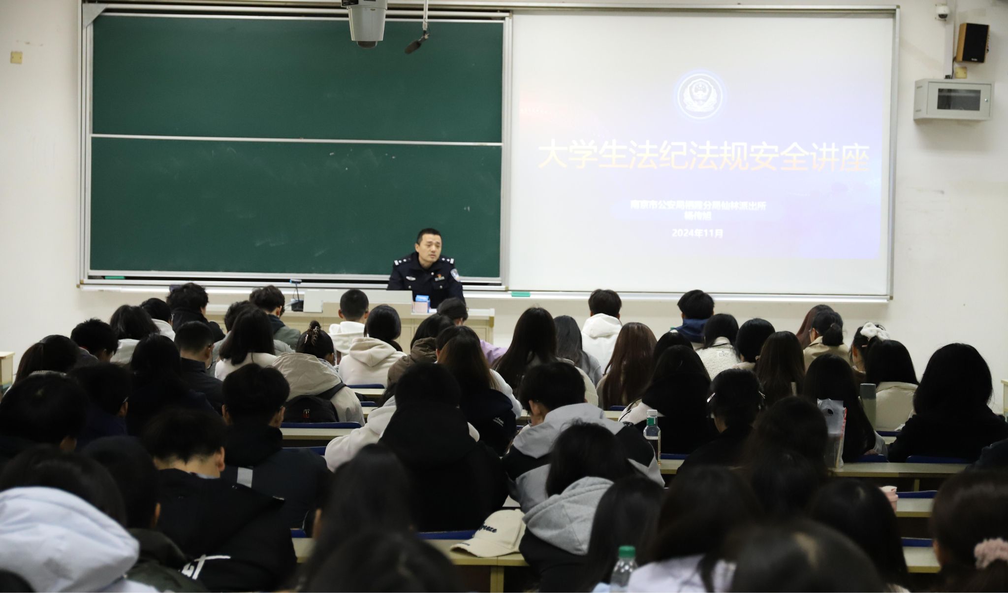 11月19日下午,在德济楼103教室,里番 特邀南京市公安局栖霞分局仙林派出所副所长杨传旭警官,举办了一场以“大学生安全”为核心的精彩讲座。本次讲座由里番 党委副书记张士青主持。