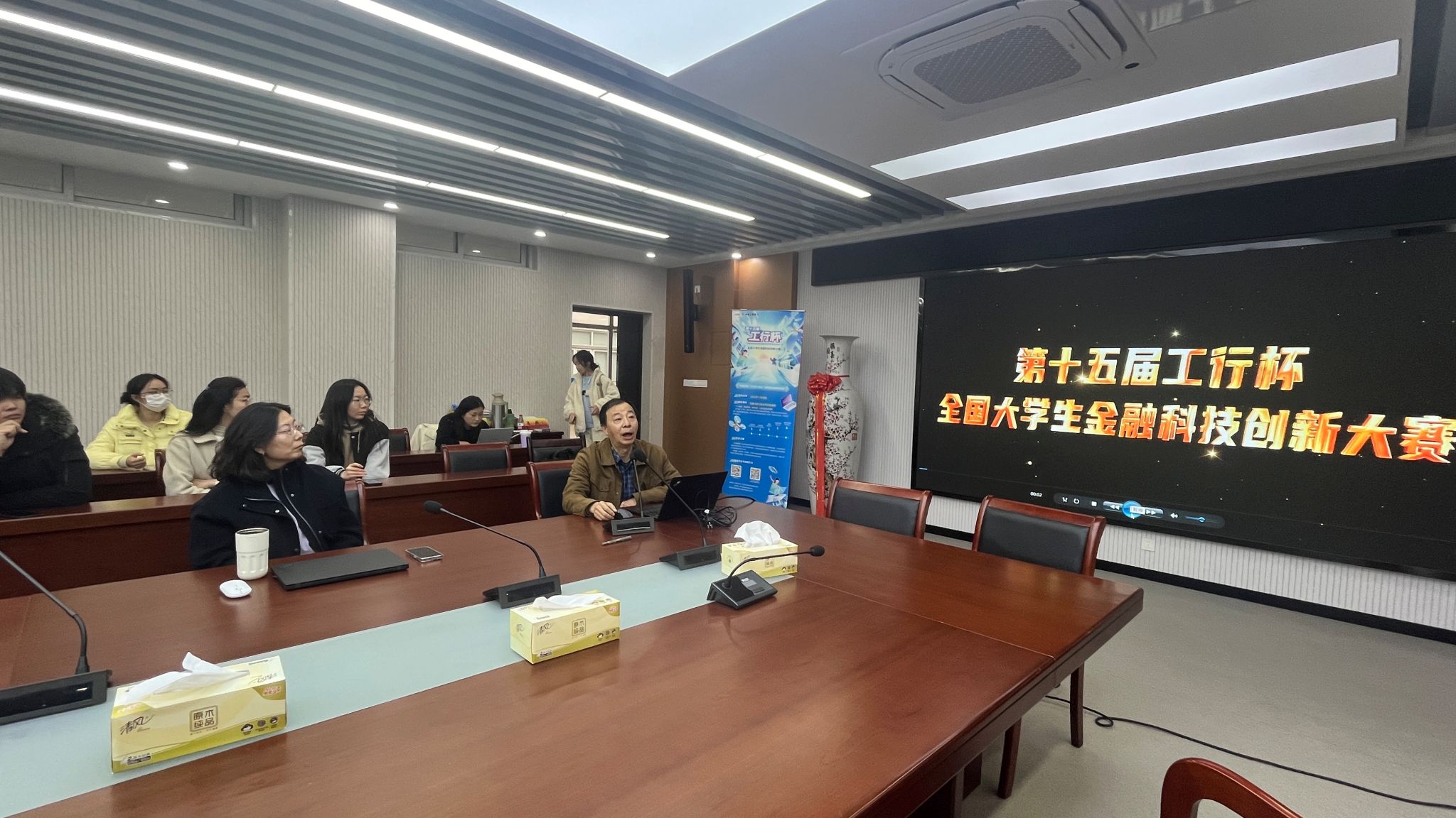 随后,中国工商银行孙刚老师详细介绍了大赛的背景、意义及赛程安排。他提到,第十五届“工行杯”大赛将继续聚焦金融科技、普惠金融、绿色金融等前沿领域,鼓励参赛者提出具有创新性、实用性和前瞻性的金融科技解决方案。同时,他还透露了大赛的丰厚奖励和职业发展机会,吸引了在场师生的浓厚兴趣。