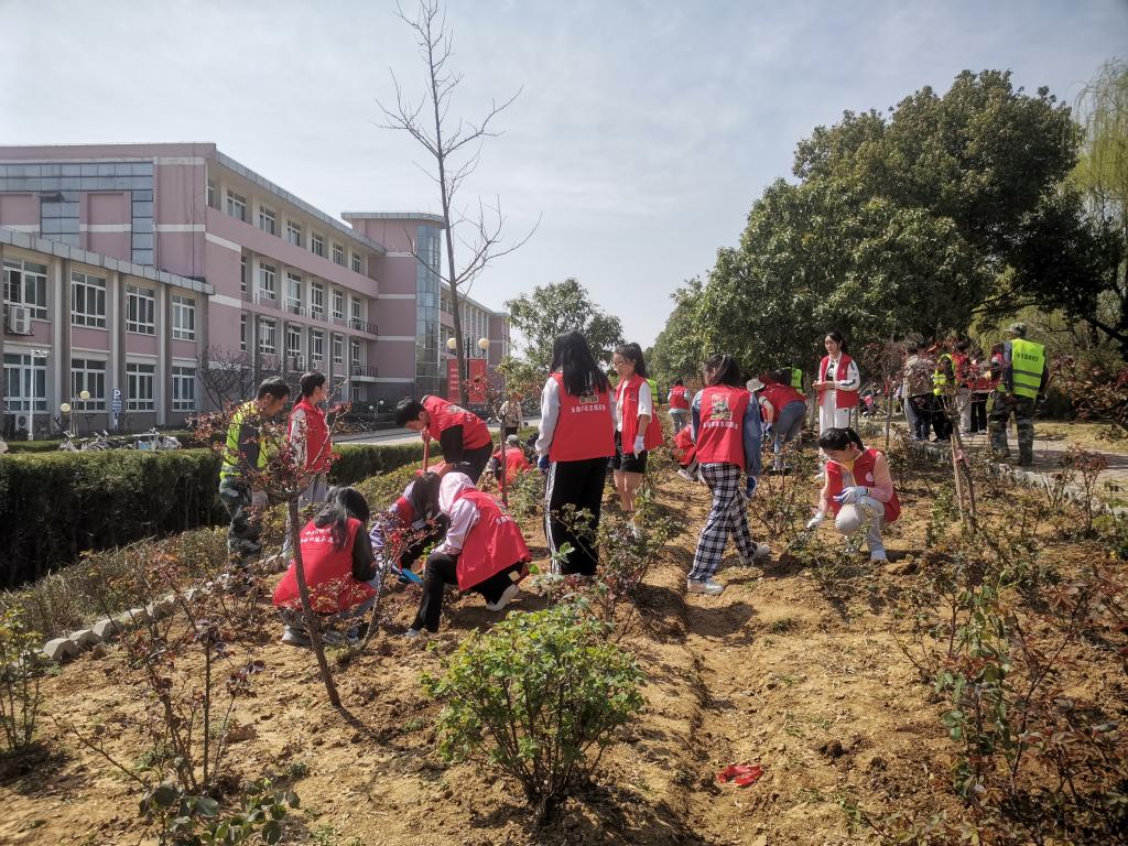 3月10日中午,里番 特联合学校后勤基建处、物业管理科举行“春意盎然植新绿,‘融勤’花园育新苗”植树节劳动实践活动。