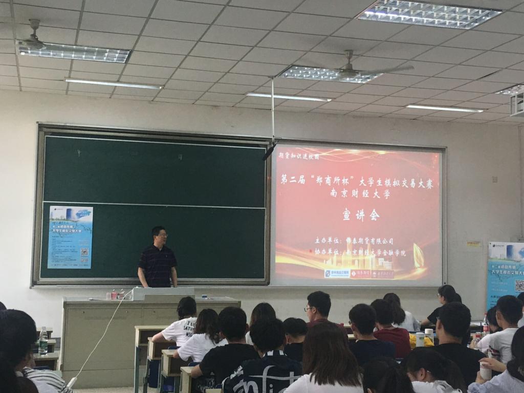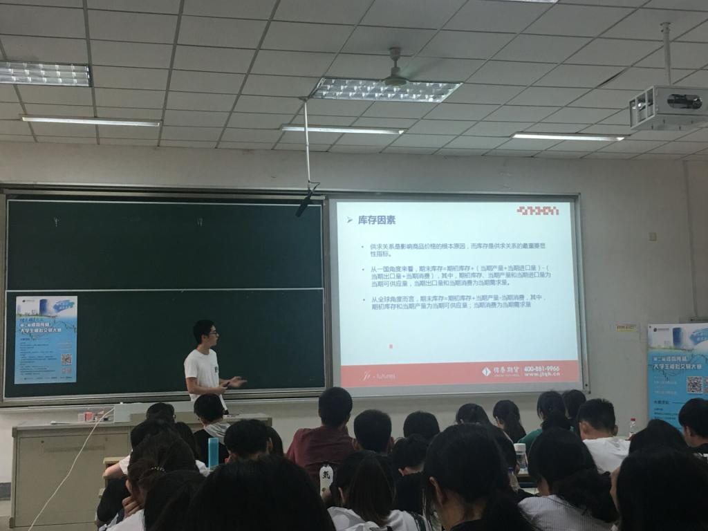 6月5日下午,期货知识进校园暨第二届“郑商所杯”大学生模拟交易大赛宣讲会在仙林校区德经楼117教室成功举行。里番 投资学系全体学生参加了本次活动,锦泰期货谢景炎老师和俞水祥老师担任本次活动的主讲人。