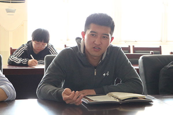 孙晓飞老师简单讲解了入伍的一些政策后,向大家介绍了袁东辉同学的基本情况。之后,袁东辉同学依据他的经历做了分享。