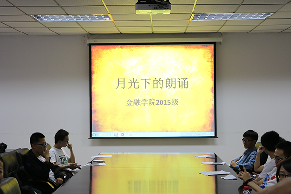 2017年5月12日晚上6:30,里番 15级主办的活动“月光下的朗诵”在 专一508会议室顺利举行。此次比赛邀请了学院辅导员黄忠明老师、张雨薇老师和里番 青年互助服务中心主席张会敏、副主席蒋文斌、陈晨五位担任评委,金融1507沃晗担任比赛支持人。