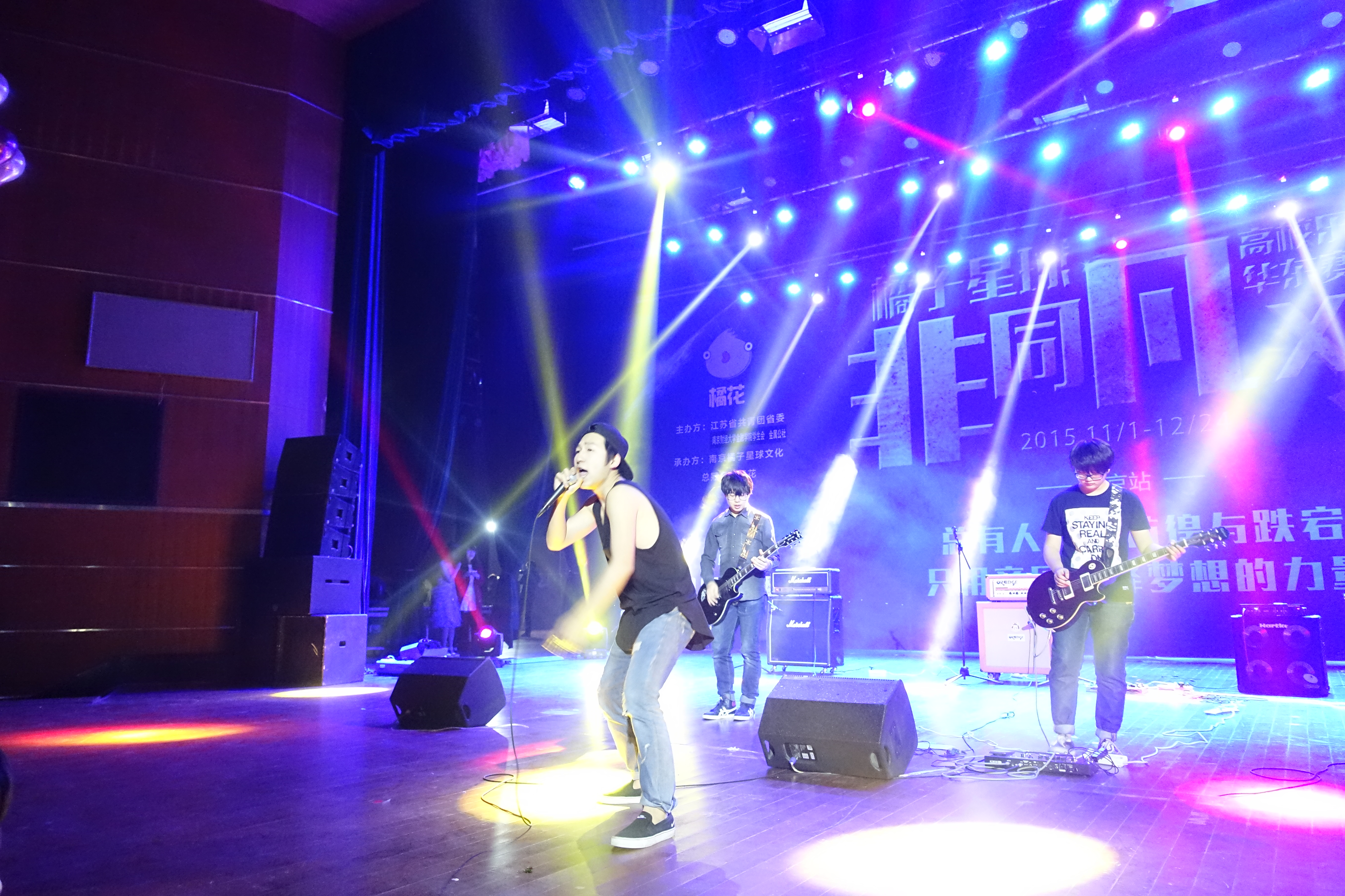 首先登场的是来自里番 的OPEN乐队。这支年轻、充满朝气的乐队,用一首惊心动魄的It’s my life点燃现场观众的激情,让我们体会到了“无音乐,不快乐”的真正意义。随后上场的南京盲校的风车乐队让在座观众感动不已。音乐让他们走在一起,用不完美的身躯演唱卓越的梦想。来自南京邮电大学的ME乐队。他们用一首“Living After Midnight”开启了他们乐队的酷炫模式,“Have a nice day”以及一首中文歌“没人给你面子”更是为他们赢得了阵阵掌声和欢呼声。