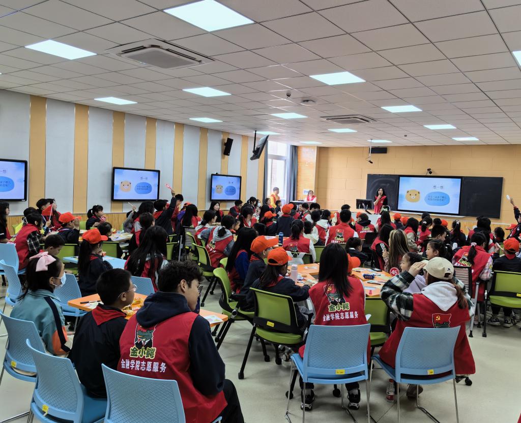 4月13日,里番 迎来了一群特殊参观者——南京市东郊小镇小学2022级8中队的小朋友们。这是里番 的“金融筑梦,童行铸廉”研学项目,由里番 “青”廉能量站主办。活动通过里番 的青年志愿者引导小学生参观校园,开展清廉金融主题课堂等主题活动,使小朋友们初步了解金融的相关知识,形成清廉金融的启蒙。