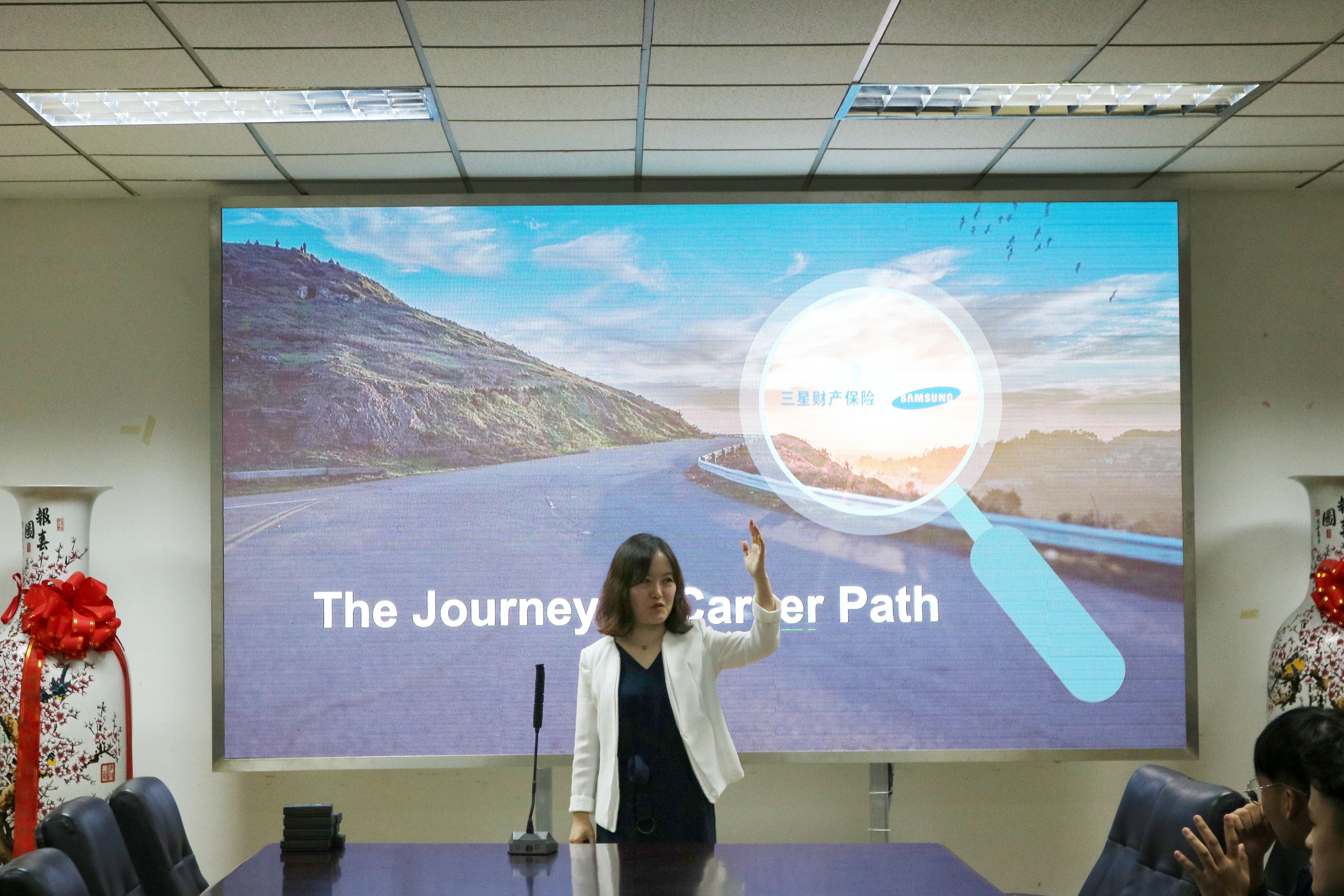 招聘经理胡宇飞指出,三星财产保险有限公司是一个全球化的保险集团,拥有悠久的历史和丰厚的里番,在中国发展前景良好。随后他概括说明了该公司校招的流程,提醒有意竞选的同学提前做好准备。