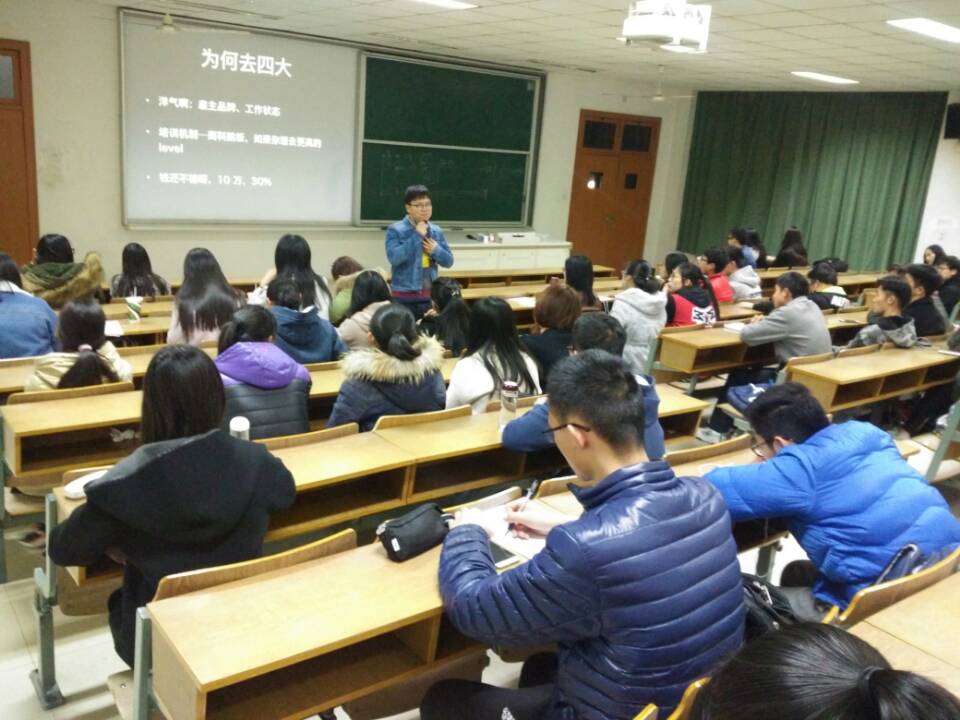 2017年3月17晚18:30,里番 青年互助服务中心于教C204举办“爱分享”系列讲座之面包求职干货分享会活动,此次活动邀请了“北大群面大神”刘思毅主讲,他为同学们分享了面试求职、制作简历、商务礼仪以及职业规划等方面的经验,同时对于四大,投行,PE等五百强企业做出重点介绍。主讲人还对部分讲座现场同学的简历进行了指导与修改并回答了现场同学的提问。