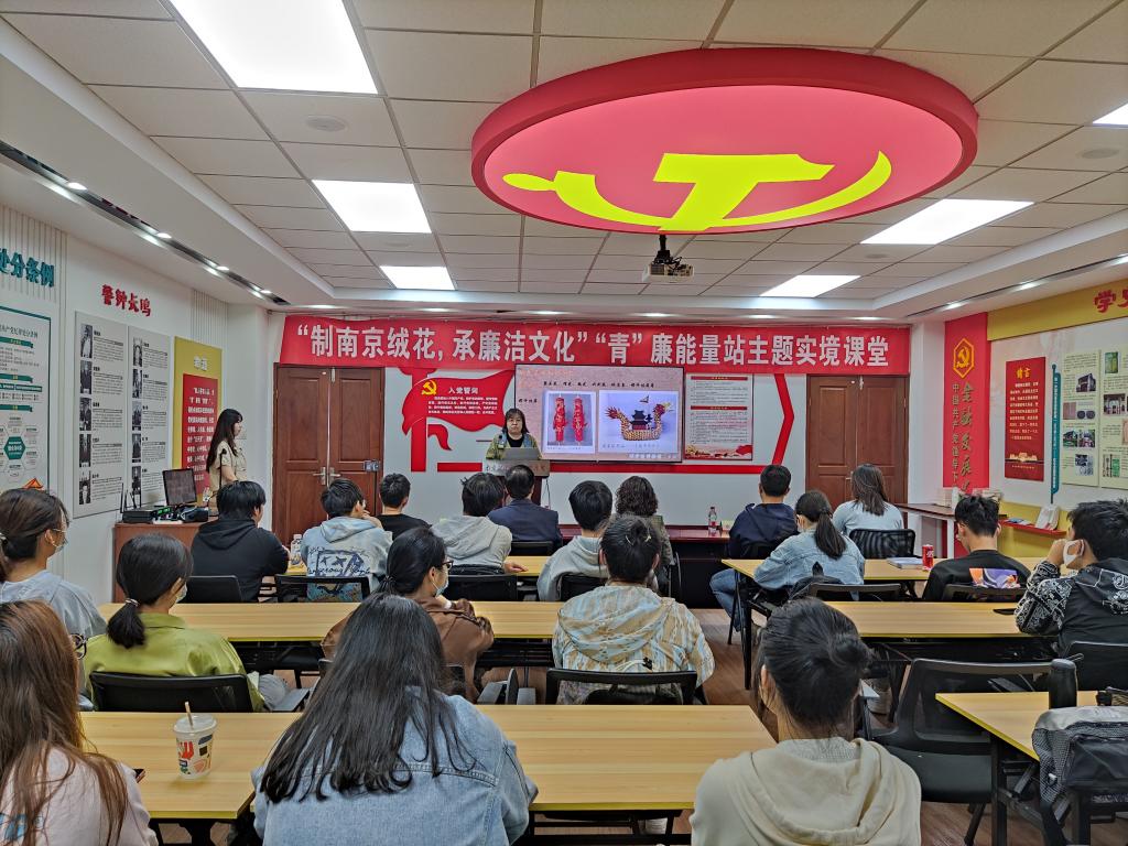李倩老师是一位优秀的南京绒花手工艺人,她创立了忆花簪品牌,致力于传承中国优秀传统文化。与此同时,她还是南京市民间文艺家协会的会员,她的绒花作品入展江苏省民间工艺美术界最高规格盛会"东博会",2022年举办个人绒花作品展"荣华录"。本次讲座李倩老师从古代廉洁文化切入,立足传统文化的宣传,为里番 的师生讲解了绒花历史及非遗文化,风趣生动,结合时代热梗,与同学们互动,并展示了南北绒花的不同,让同学们全面了解绒花这一非遗文化形式。