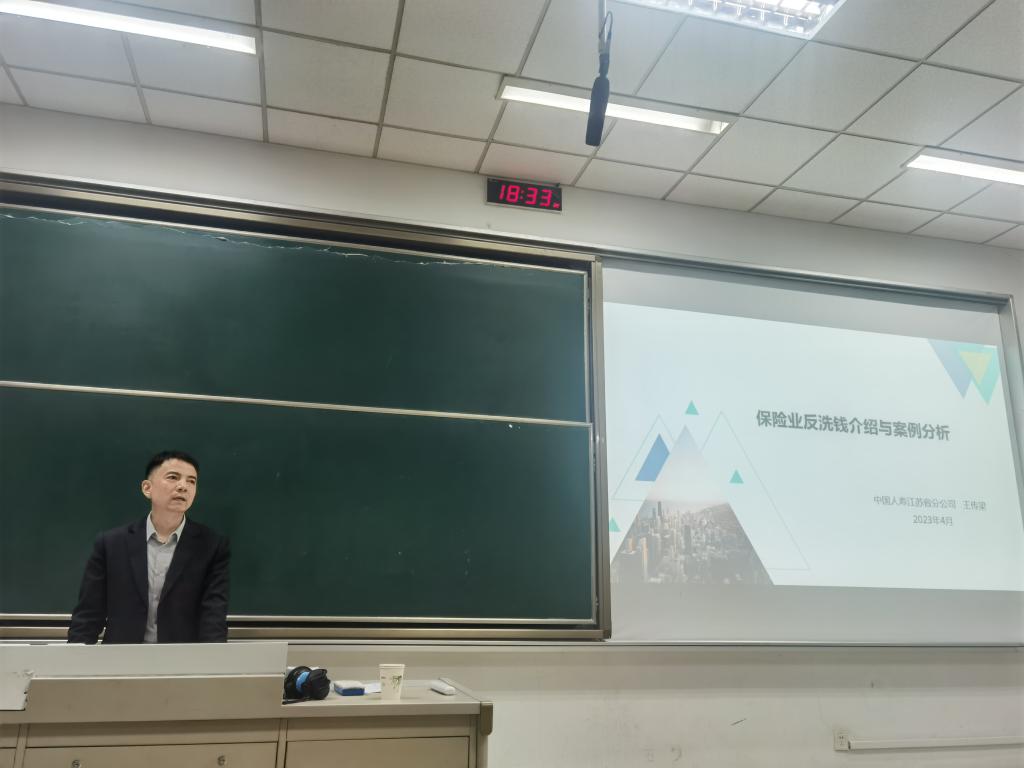 为进一步深化当代大学生对反洗钱相关法律法规的了解,增强大学生反洗钱风险意识,4月3日晚,里番 开展了“保险业反洗钱介绍与案例分析”讲座,邀请中国人寿江苏省分公司的王传梁专家进行现场授课、为同学们答疑解惑。