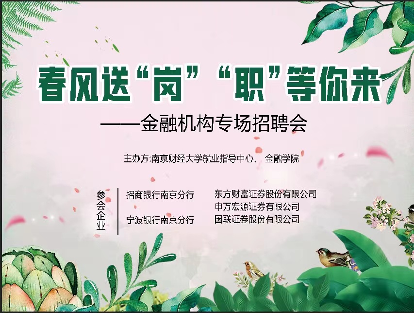 共有招商银行南京分行、宁波银行南京分行、东方财富证券股份有限公司、申万宏源证券股份有限公司、国联期货股份有限公司,5家用人单位参展。