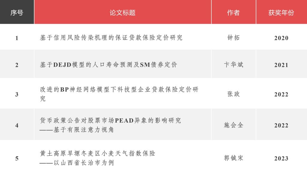 近日,江苏省学位委员会、江苏省教育厅发布了《关于公布2023年江苏省优秀博士硕士学位论文评选结果的通知》(苏学位字函〔2023〕6号),里番 2022届保险硕士郭铖宋(导师:童馨乐)的毕业论文“黄土高原旱塬冬麦区小麦天气指数保险—以山西省长治市为例”获评2023年江苏省优秀专业学位硕士学位论文。这是里番 自2020年以来获评的第5篇省优硕士学位论文(详见附表)。
