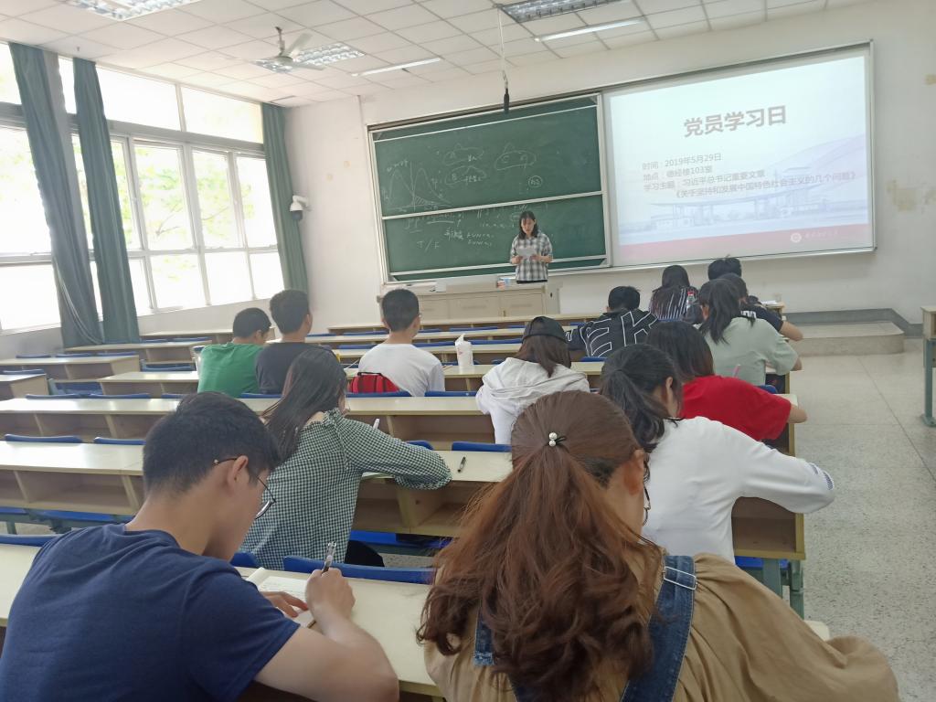 5月29日中午,里番 学生党支部在德经楼103开展“党员学习日”活动,集中学习习近平总书记重要文章《关于坚持和发展中国特色社会主义的几个问题》,会议由第三学生支部学生党员高婷婷主持。首先,高婷婷带领全体学生党员研读了文章的摘要部分,文章从四个方面问题展开,分别阐述了中国特色社会主义是科学社会主义,改革开放前后的社会主义建设都是我们党领导人民进行的社会主义建设的实践探索,马克思主义是随着时代不断发展的和...