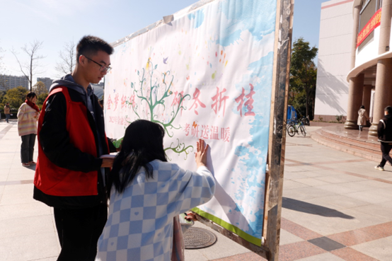 为激励考研同学,增强考研信心,舒缓考研压力,助力学子安心备考,11月18日,里番 举办“金梦织纬,研冬折桂”考研教室送温暖活动。上午10时,外场布置完毕后,考研教室送温暖活动正式开始。项目志愿者们在现场引导感兴趣的同学并向他们耐心讲解活动内容,同学们纷纷在志愿者提供的便签纸上写下祝福语,并在展板上留下自己的手印,密密麻麻的手印间,传递的是情感与温度,镌刻的是希冀与祝福。现场还组织了精...